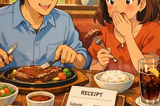 An expensive steak lunch